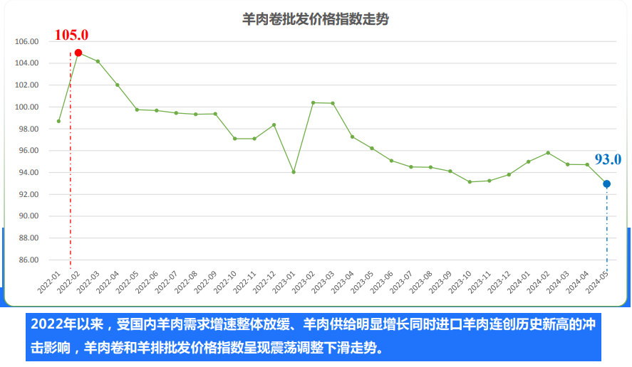 锡林郭勒羊包括苏尼特羊、乌珠穆沁羊和察哈尔羊。调研显示,每年8月初到11月中旬(约100天),牧民将羔羊辅以少量大羊出售给锡盟各屠宰加工企业;经过屠宰分割后,主要以羊肉卷和羊排形式出厂对外批収销售(占到产品销量95%以上)。指数编制团队以羔羊、羊肉卷和羊排作为编制“中国羊产业·锡林郭勒指数”代表规格品。